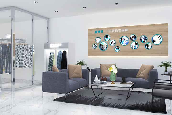 威特斯洗衣品牌在開店前期,為加盟商提供選址,專業(yè)設計師根據(jù)店鋪排尺,一對一為店面進行全屋定制化裝修設計,幫加盟商省下很多裝修成本等。